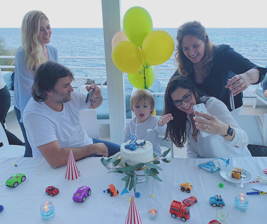 In questa foto siamo in videochiamata con i nonni tedeschi e con gli zii da Trieste.