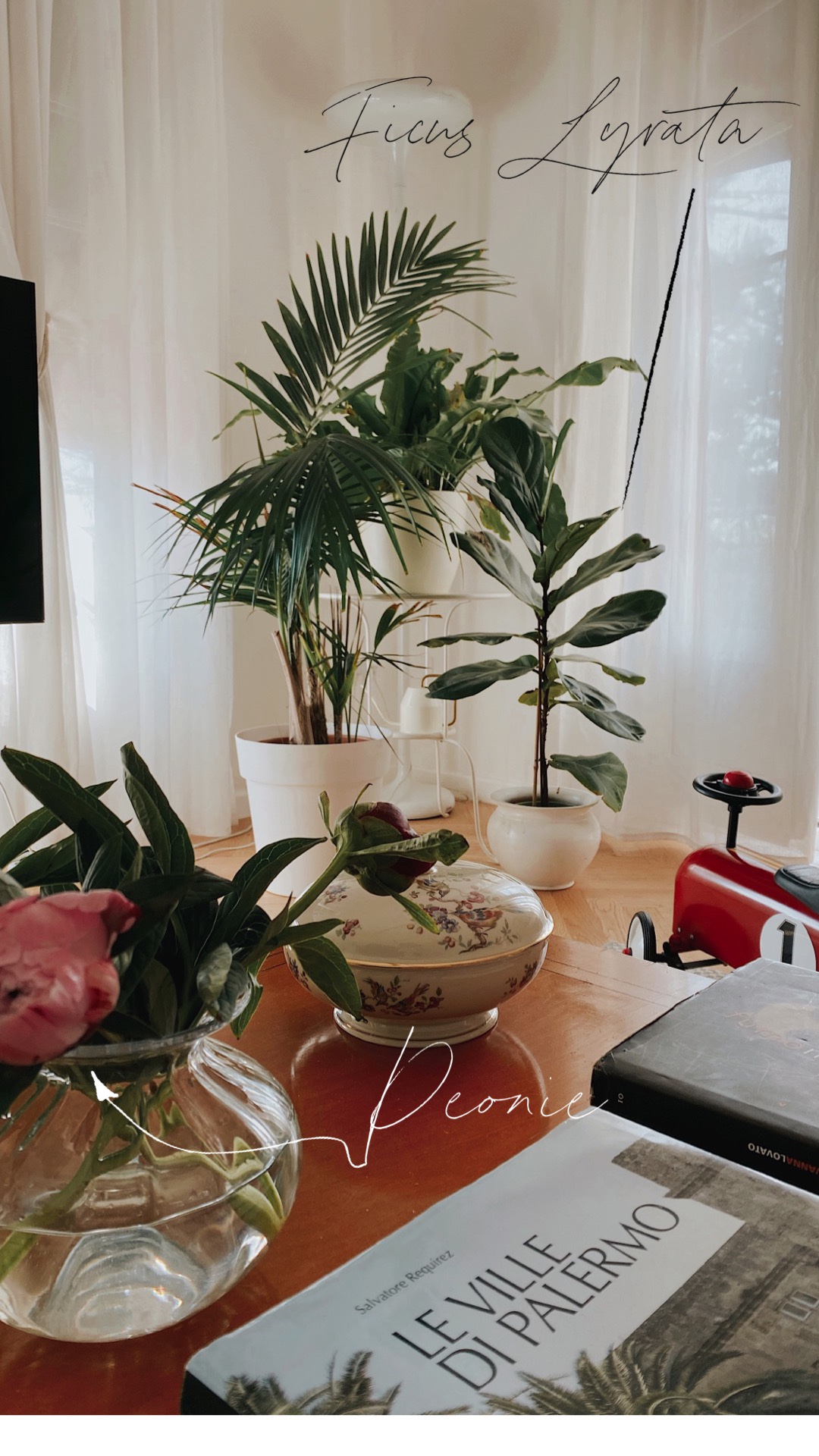 Quanto è bella questa pianta? È originaria dell’Africa occidentale. Ha grandi foglie che nella forma ricordano la sagoma del violino. Necessita di molta luce diffusa per non spogliarsi alla base. Sotto i 15 gradi soffre, sopra i 18 gradi può essere bagnata con regolarità. La terra non deve mai asciugare fra due bagnature successive che devono avere cadenza settimanale. Soffre di ristagno idrico, per cui attenzione se rimane acqua sotto al vaso. Io l’ho ordinata su Amazon, a Palermo è difficile trovarla.